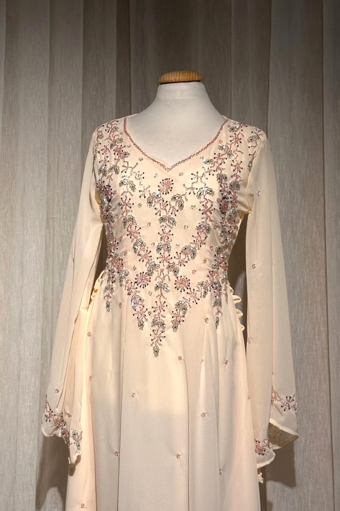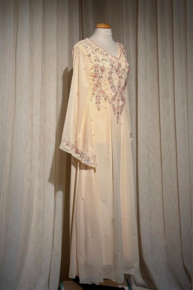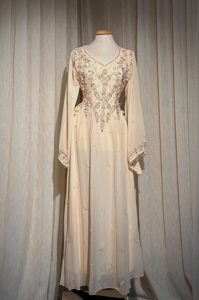 جلابية طويلة بتطريز عربي مميز وبحزام عند الخصر